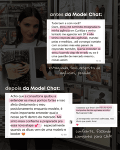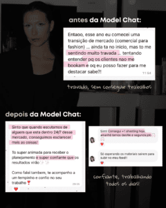 Converse comigo individualmente e juntas vamos traçar um plano de ação para você alcançar seus objetivos como uma modelo de destaque!
