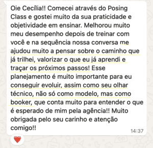 "O que já coloquei em prática me ajudou a conseguir mais jobs e ter um melhor relacionamento com a minha agência"