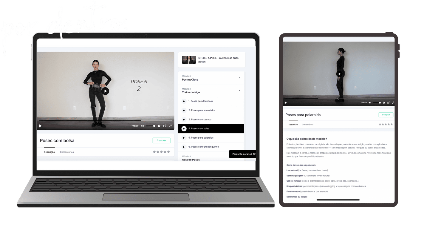 Uma aula aprofundada que te ensina tudo o que está por trás das poses que realmente destacam uma modelo. Do repertório à intenção, você vai entender como se posicionar com clareza.